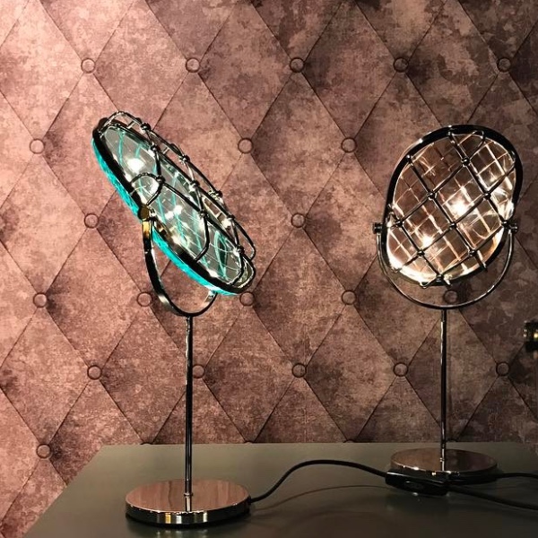 Nika Zupanc's Crystal table lamps for Contardi exploit the possibilities opened up by LED, with tiny light sources incorporated into the metal frame, creating a reflective glow within pressed-glass panels.
