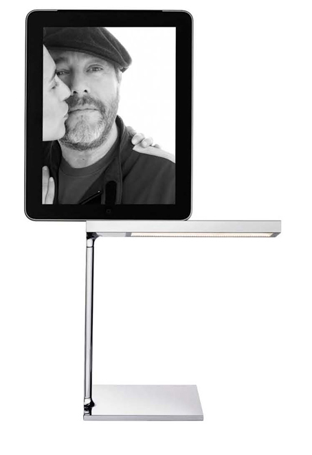 Stel je zit in de foyer van je favoriete boutique hotel en je iPad of iPhone is bijna leeg. De verbinding met uw online leven wordt onaanvaardbaar bedreigt en u moet dringend in actie komen! Voor dit veel voorkomende en beangstigende scenario is er nu een stijlvolle oplossing met de nieuwe tafel lamp D’E-Light van Flos, ontworpen door Philip Starck.