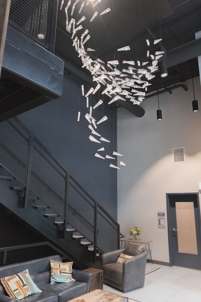 PROP is combinable into a modular ceiling system. You can mount a grid or strut to the ceiling and add PROP to it.