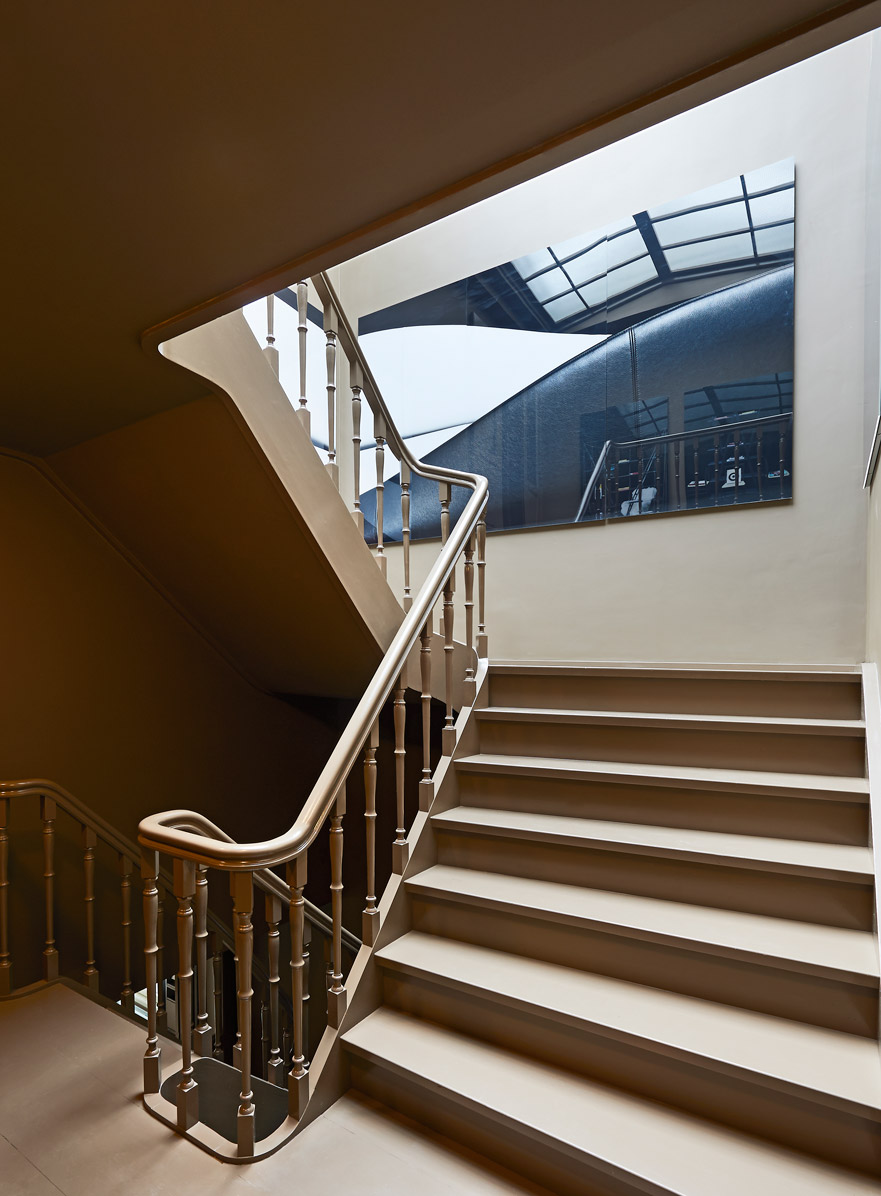 Brink was direct gecharmeerd van het grachtenpand. De Lensvelt HUB wordt ingevuld met partners die een interessant aanbod hebben voor architecten zoals kunst, vloeren, alle soorten project meubilair, stoffering, multimedia en natuurlicht verlichting. “Het hele pand staat bol van de creativiteit. We hebben er een eigen kantoor / bibliotheekruimte. Daarnaast zijn er drie ruimtes voor gezamenlijk gebruik, zoals de Stijlkamer uit de 17e eeuw met een indrukwekkend monumentaal plafond. Hier kunnen we gasten ontvangen en presentaties houden. We kunnen ons werk laten zien in de gezamenlijke showroom de Gallery. Er is een Tuinkamer die geschikt is voor lunches, borrels en diners. De openslaande deuren leiden naar een grote binnentuin en ook daar ontbreekt het niet aan bijzondere objecten", zegt Brink, doelend op de designvilla voor de kippen. En wanneer de lichtadviseurs van Studio Brink zich snel willen verplaatsen door het altijd levendige en drukke centrum van de hoofdstad, pakken zij de bedrijfsfiets.