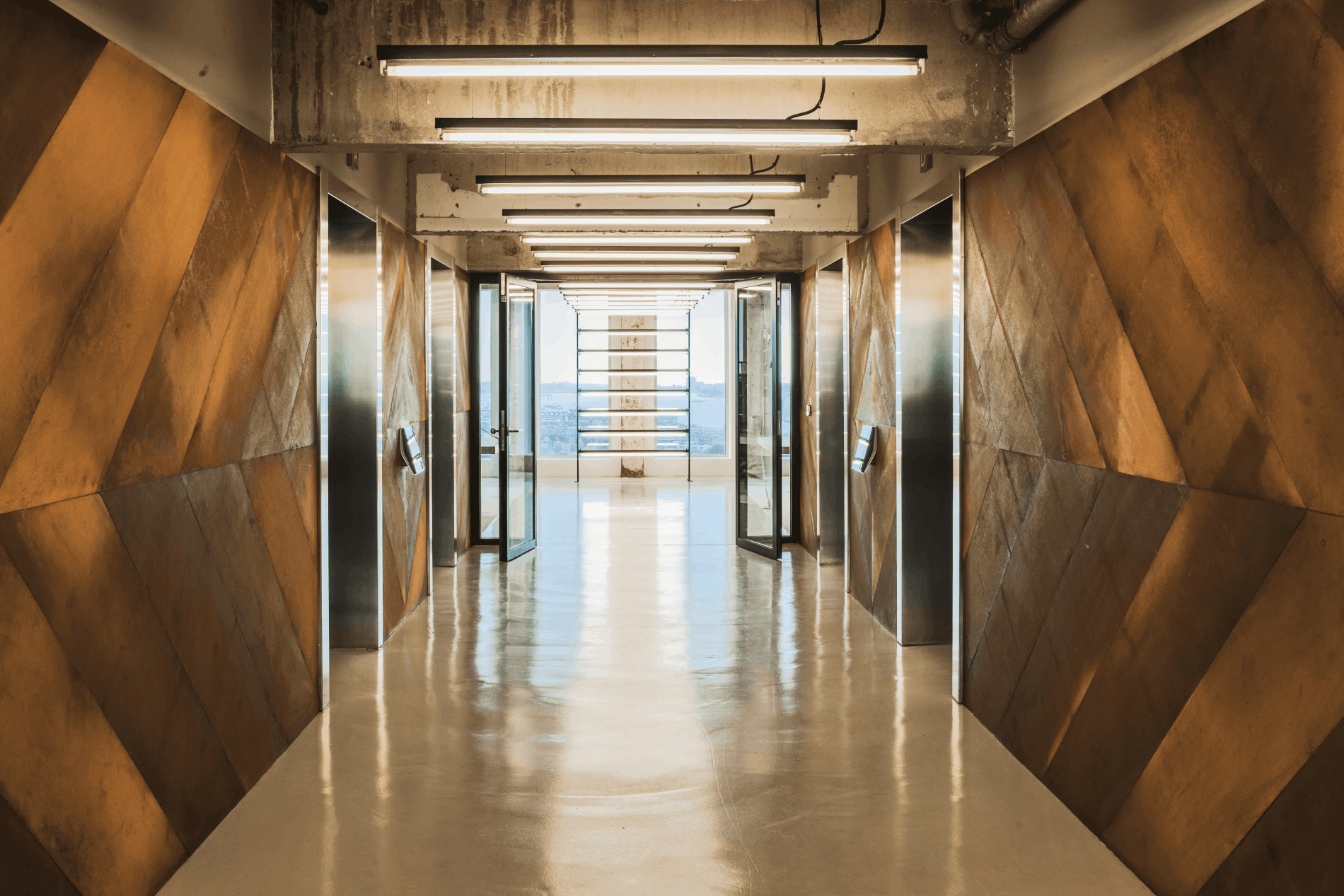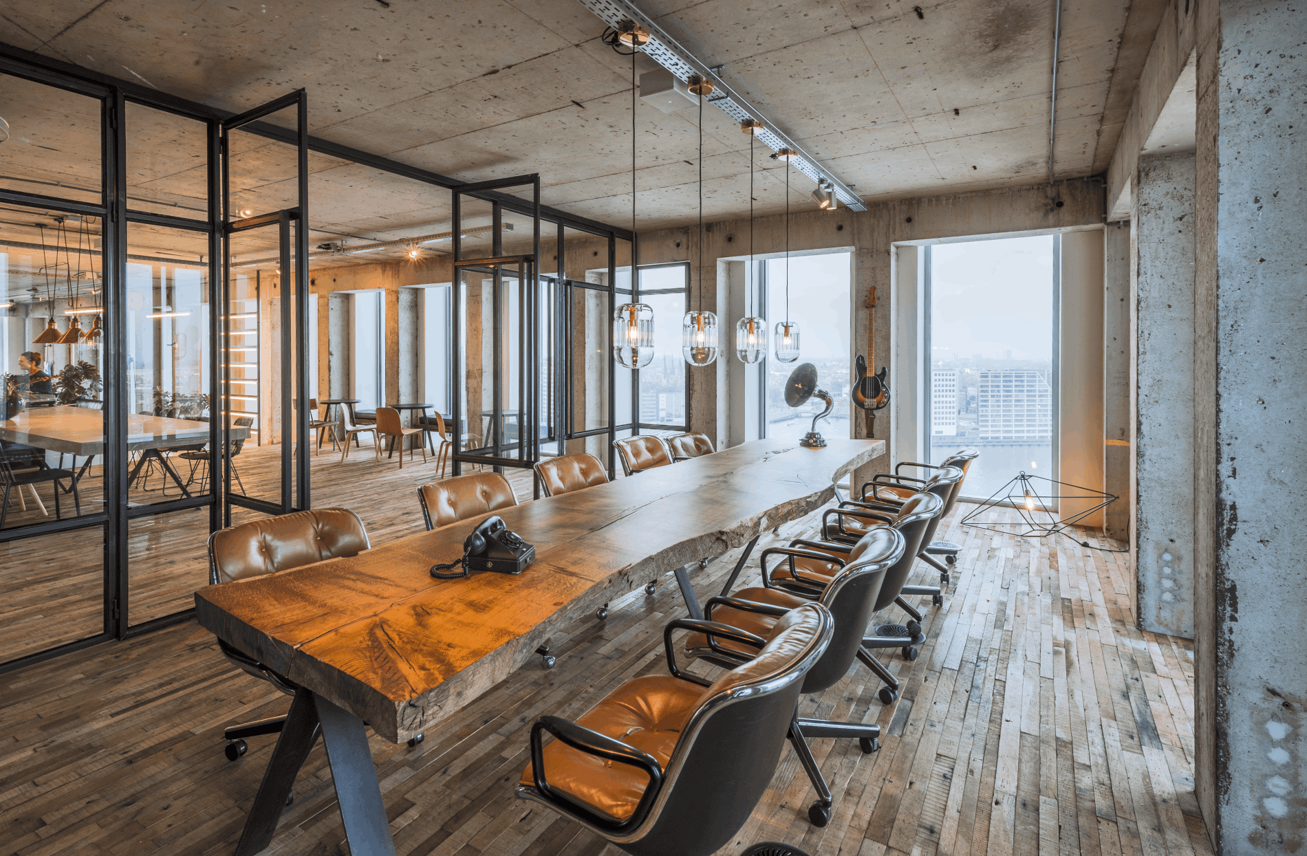 De designbrieving voor de verlichting was bold, urban and inviting. Bijzonder zijn de hangende betonnen bureaus en de multifunctionele keuken die ook dienst doet als dj booth en bar.
