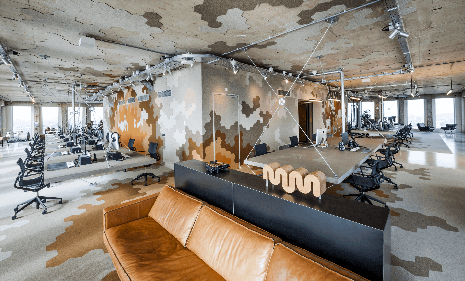 Het interieur van Massive Music HQ in de A'dam Toren in Amsterdam is een ontwerp van TANK.